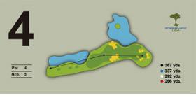 Las 367 yardas de este hoyo y los múltiples obstáculos, lo convierten en otro par 4 corto y complicado. Dogleg a la derecha, con una gran loma que divide el fairway,convierte al tiro de salida en ciego y en subida. Dos grandes cross bunkers a cada lado del fairway y el fuera de limites sobre todo el costado derecho, obligan al jugador a afinar sus destrezas para colocar el golpe de salida. Para el pegador largo, la laguna sobre el costado izquierdo en la segunda parte del fairway, genera una dificultad extra. El segundo tiro normalmente se realiza en desnivel a un green con mucho movimiento y protegido por varios bunkers.