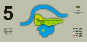 Se trata del par 3 más difícil de la cancha, tiene 195 yardasy el tiro de salida se debe realizar por encima de una gran lagunaa uno de los greens mas difíciles ya que solo tiene 15 paso de profundidad y está protegido por 3 bunkers, dos sobre todo el ancho del green en la entrada y el otro al fondo. El green posee un gran movimiento y grandes caídas.