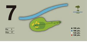 El hoyo 7 es el segundo par 3 de la cancha. Tiene 186 yardas y exige al jugador pegar un hierro muy derecho, si es que no quiere pegar su próximo tiro desde la arena o de los bunkers de pasto, ya que los bunkers rodean casi todo el green, excepto su entrada. Al tratarse de un green angosto y largo con 2 plataformas separadas por un suave desnivel. Un tiro a la plataforma equivocada se puede ingresar en la zona de "3 putts".