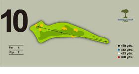 Con 479 yardas, el hoyo 10 es elpar 4 máslargo de la cancha. El drive esta defendido por cross bunkers sobre ambos lados, aunque el fairway es relativamente ancho, es el único hoyo en toda la cancha que te permite errar el tiro de salida sin penalidad. El segundo tiro se hacecon un hierro largo, y su green, bien defendido con bunkers, no aceptará más que un tiro perfectamente ejecutado.