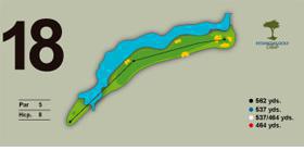 Toda gran cancha de golf merece un final desafiante. Y eso es precisamente el hoyo 18 de Estancias Golf, un espectacular par 5 de 562 yardas, con agua sobre la izquierda hasta el green, y un fairway serpenteante que demanda la mayor concentración. Para el segundo tiro es tiempo de tomar decisiones firmes, jugar un hierro a buena o intentar pasar los 2 crossbunkers poniendo en juego el agua. El green presenta una gran loma en el medio, con lo cual será imperativo acertar la plataforma donde se encuentre la bandera. Los bunkers amplios defienden aún más un green ya de por sí bastante complicado. El hoyo 18 lo tiene todo para finalizar una increíble vuelta en la cancha de Estancias Golf Club.